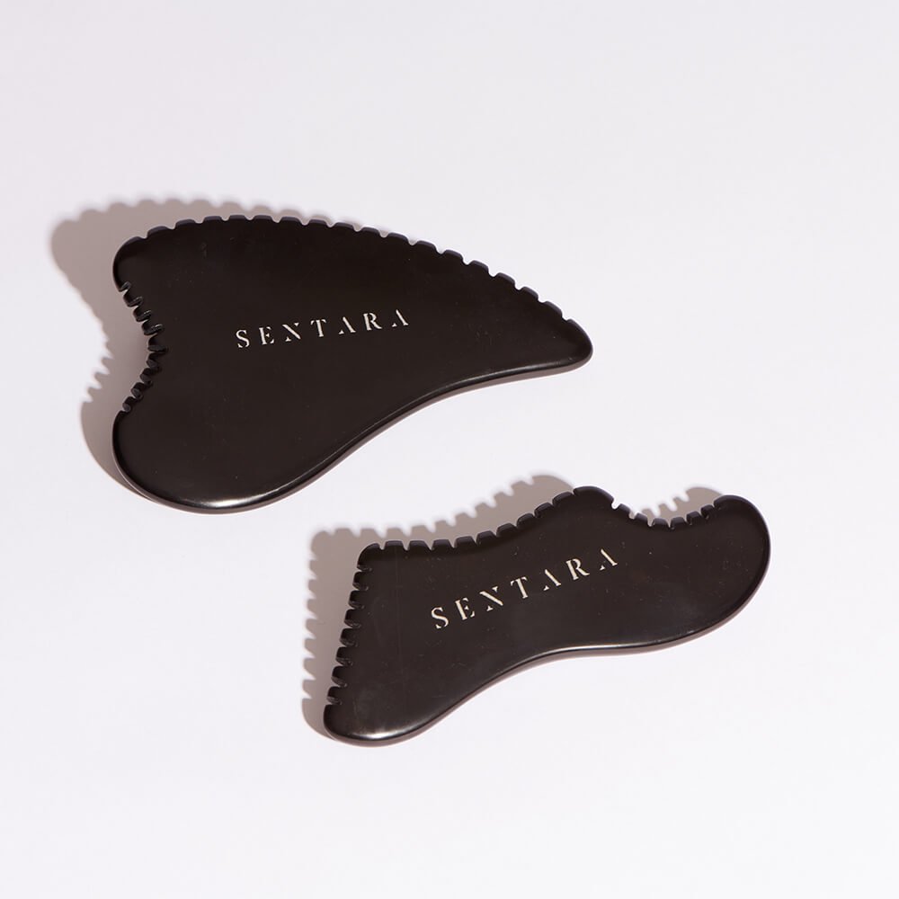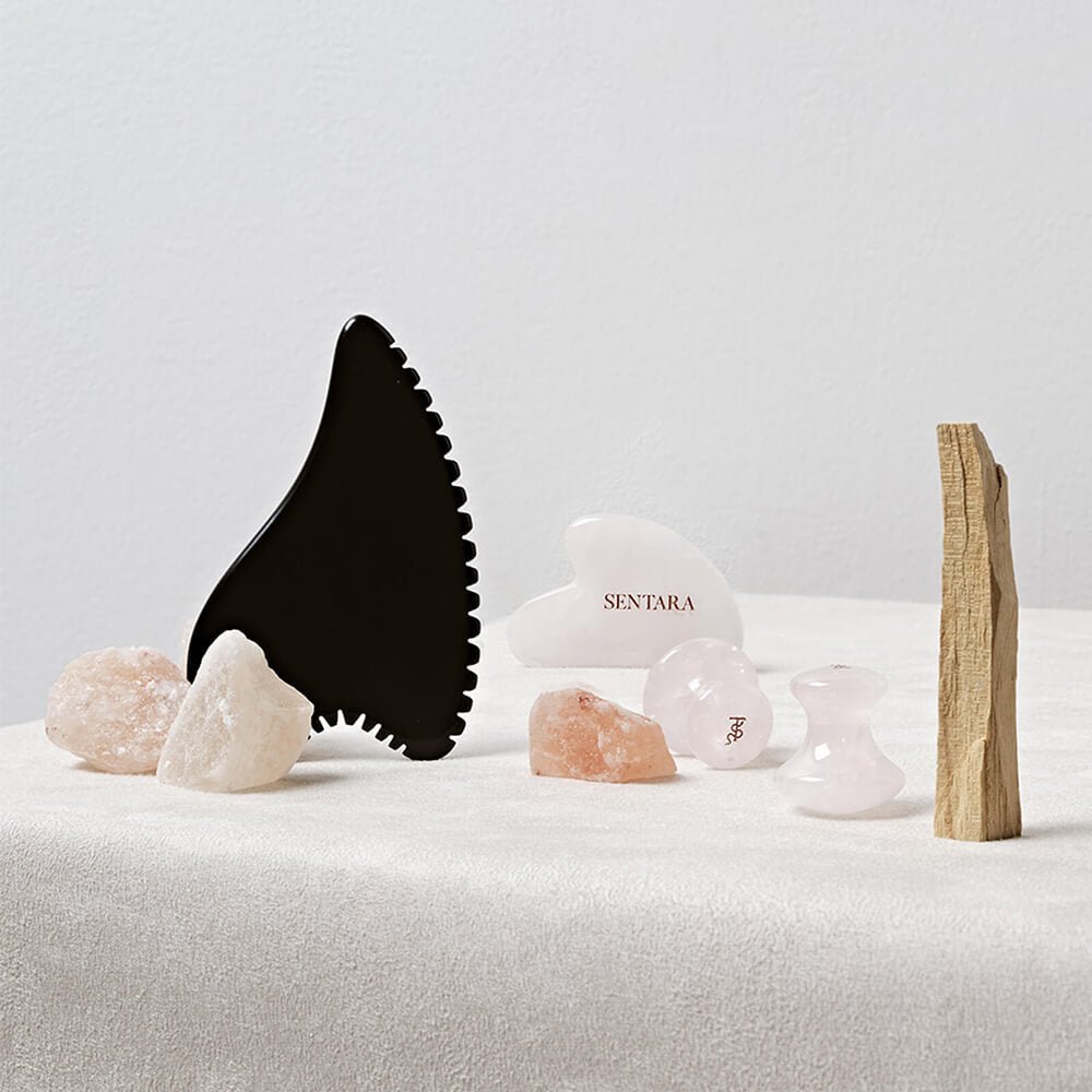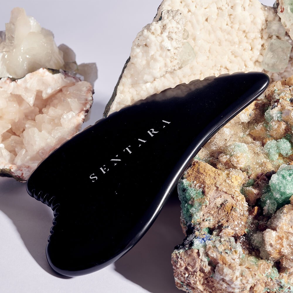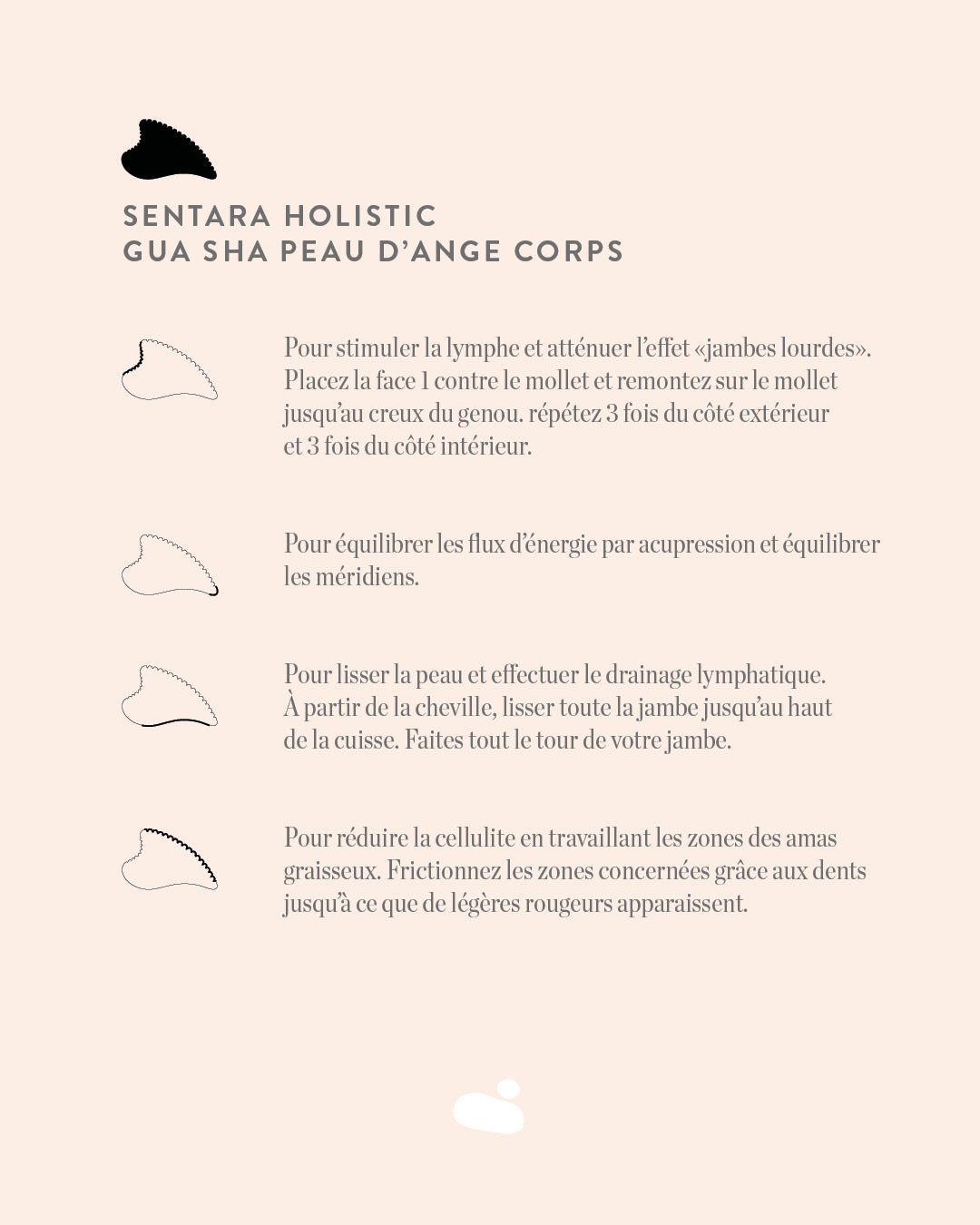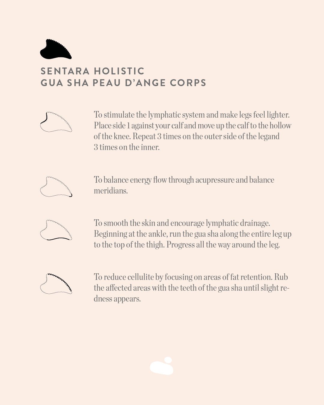 A gua sha made of precious stone with a unique shape, designed to give you firmer skin for smoother legs with reduced cellulite.